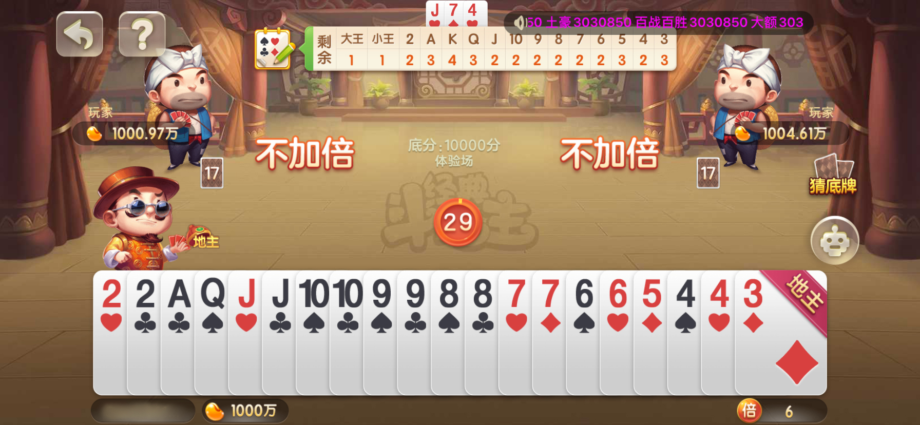 首先,参加斗地主,我们要有一个不错的记忆力,要记得已经打了什么牌。还剩什么牌,能配对的有哪些,一般来说,我们在一开始发完牌后我们肯定会想到一些不错的组合以及待会要打什么牌,但是有时候对手打出的牌就很容易打乱你的出牌计划,说不定还有些“猪队友”,而这个时候我们就要随机应变,迅速将剩下的牌重新组合,并且配合队友如果自己手中没有双王或者2,要警惕对方是不是有这方面的牌。