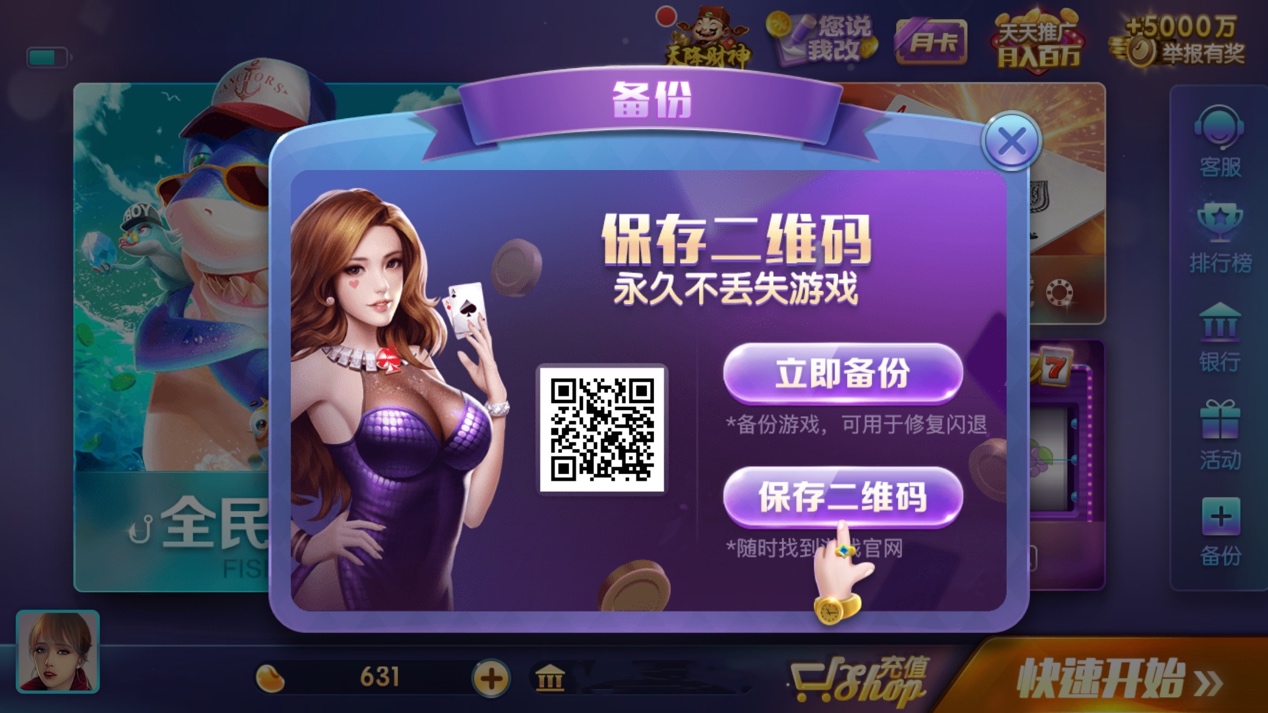 728首页——点击右下角“备份”——点击“保持二维码”,永久不不丢失游戏。